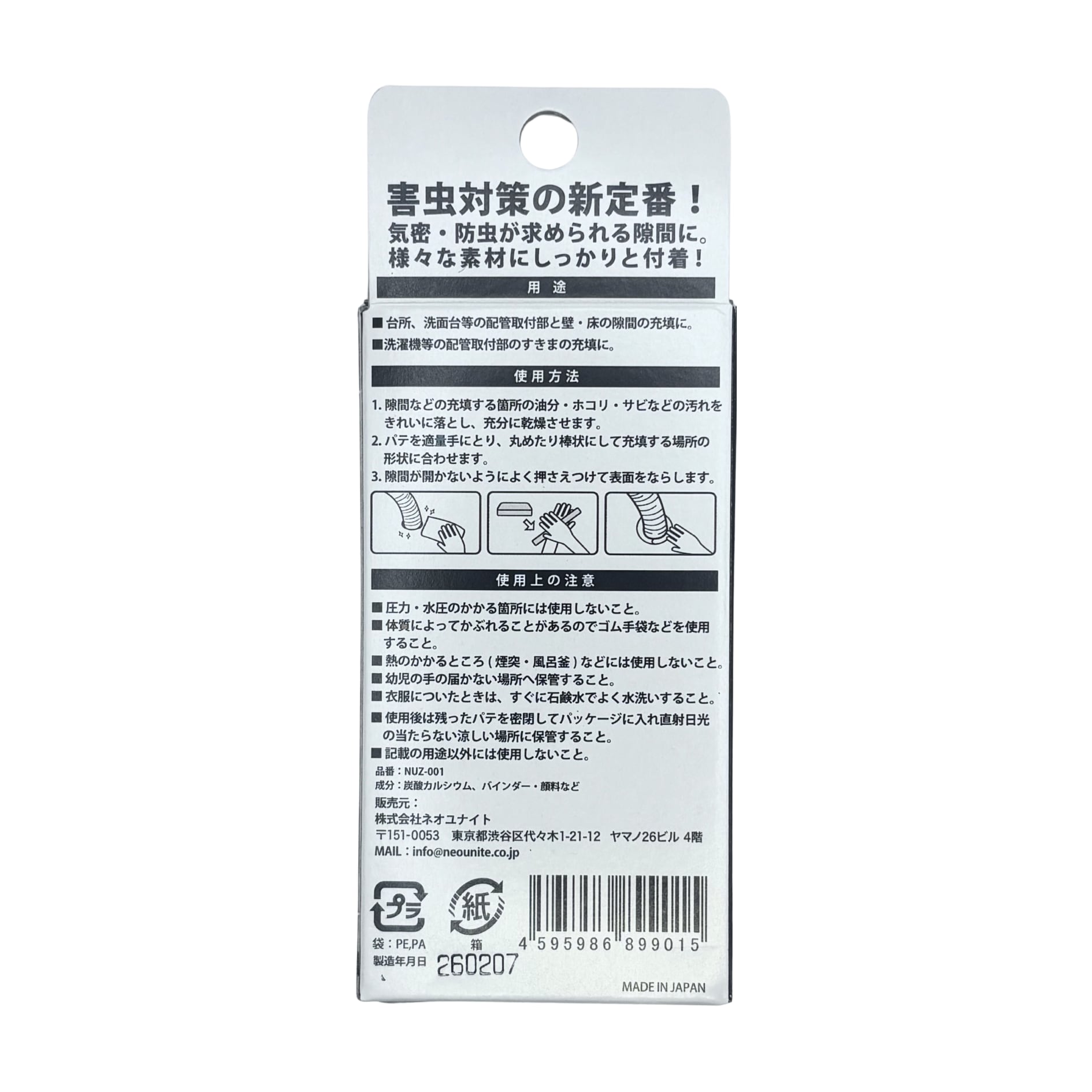 ・屋外利用やDIYにも非常に役立つこの封印パテは、あらゆる空間でのトラブルを未然に防ぎ、快適な生活空間を提供します。